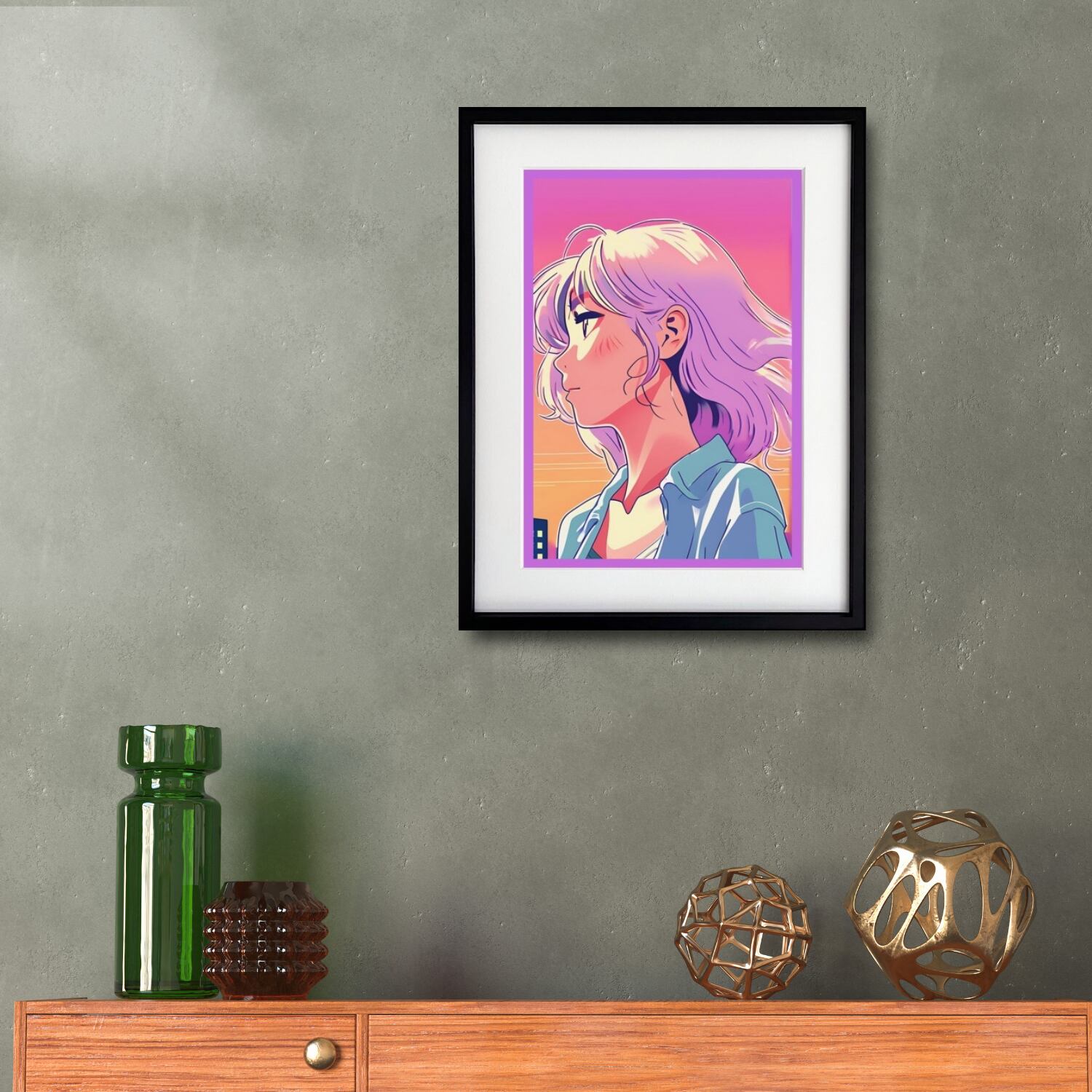 夕焼けグラデーションに佇む横顔アートポスター『Afterglow』|ラベンダーヘアが映えるエモーショナルな一枚:|A2ポスター